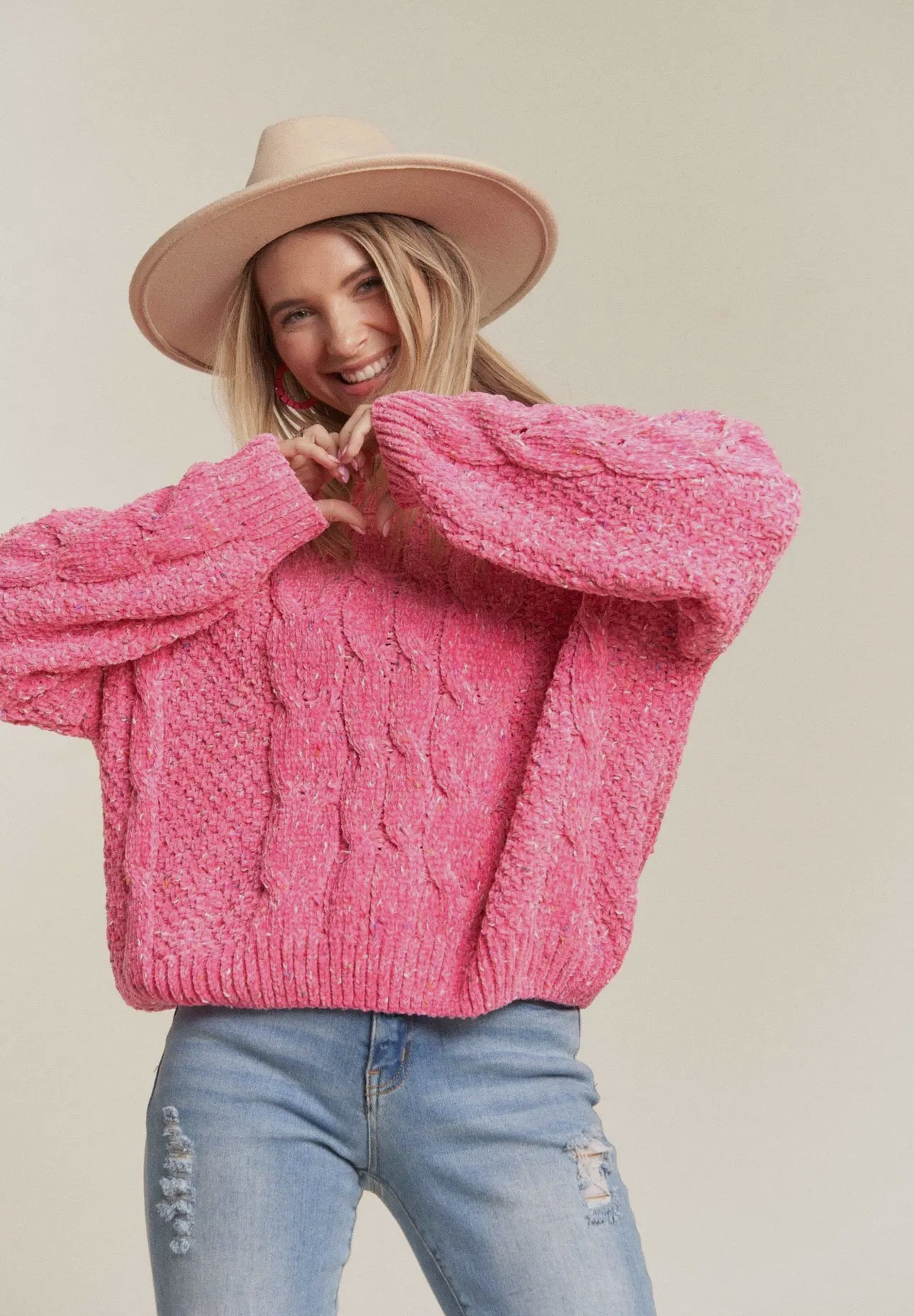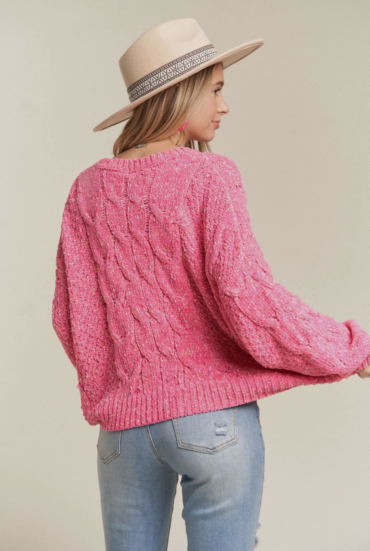 Embrace comfort with the Carrie Cable Knit Sweater! Boasting long sleeves, a round neck, and colorful polka dot details in vibrant pink, this top is ideal for any laid-back event. Crafted with a blend of 80% polyester and 20% acrylic, you'll exude both fashion and ease in this one-of-a-kind, fun-filled sweater. (Who doesn't adore dots?!)