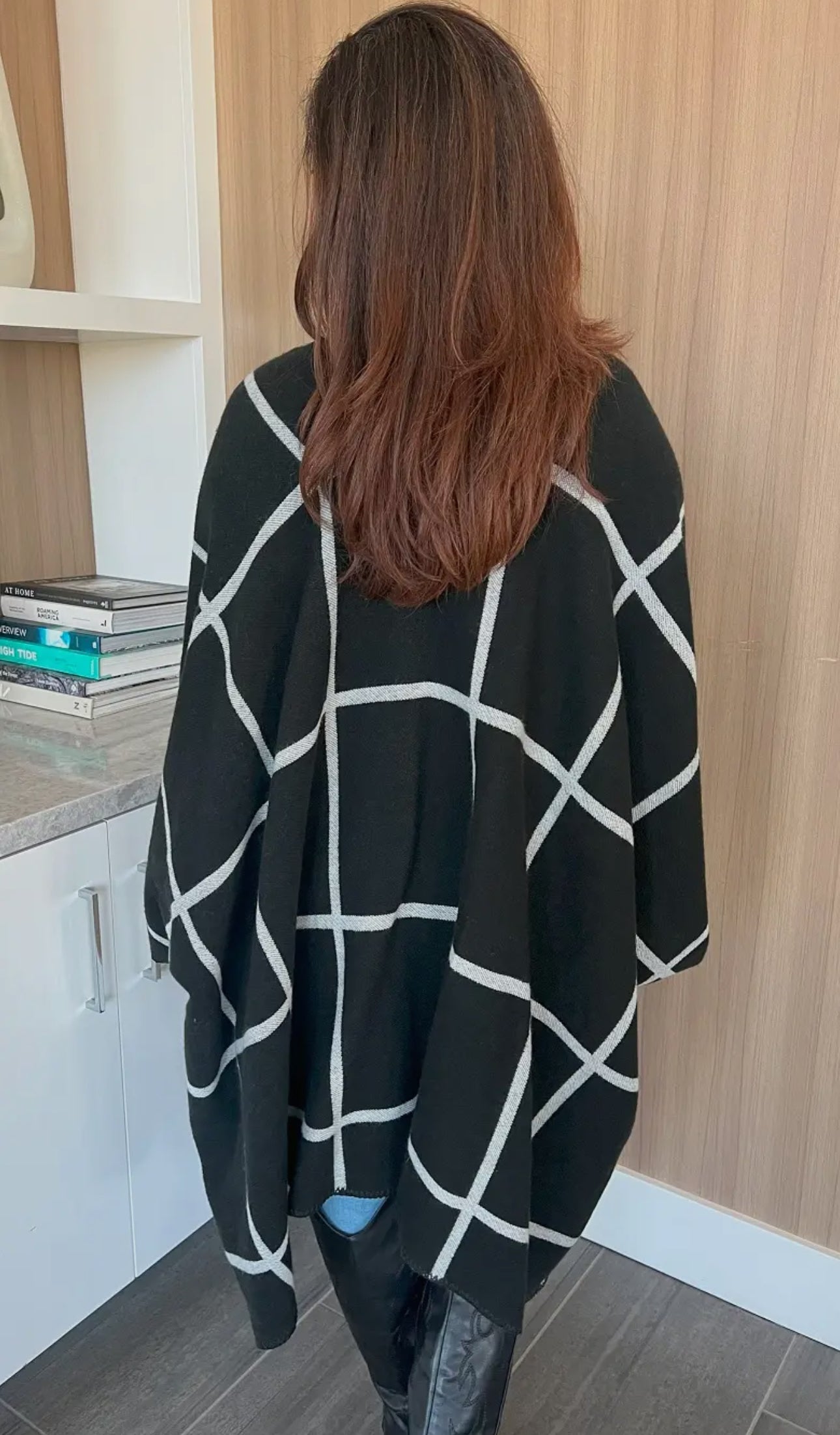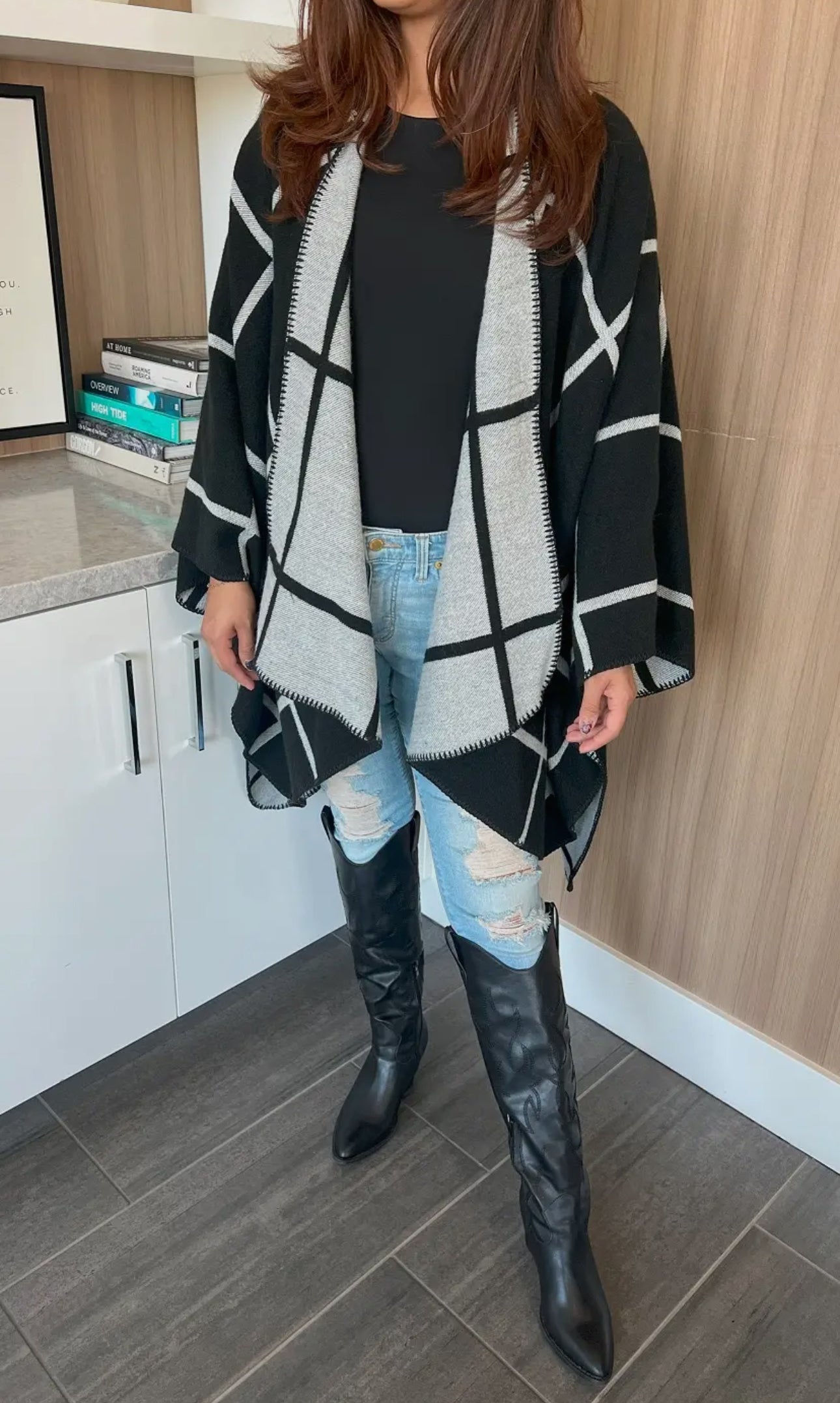 Introducing the "Shiver" kimono-the perfect blend of warmth and style for fall and winter. This luxurious piece features two rich shades to choose from: burgundy and blush pink or the classic black and grey plaid pattern. It is crafted from soft, cozy fabric that ensures comfort and elegance. The intricate stitching along the edges adds a refined touch, making it a standout addition to any wardrobe.