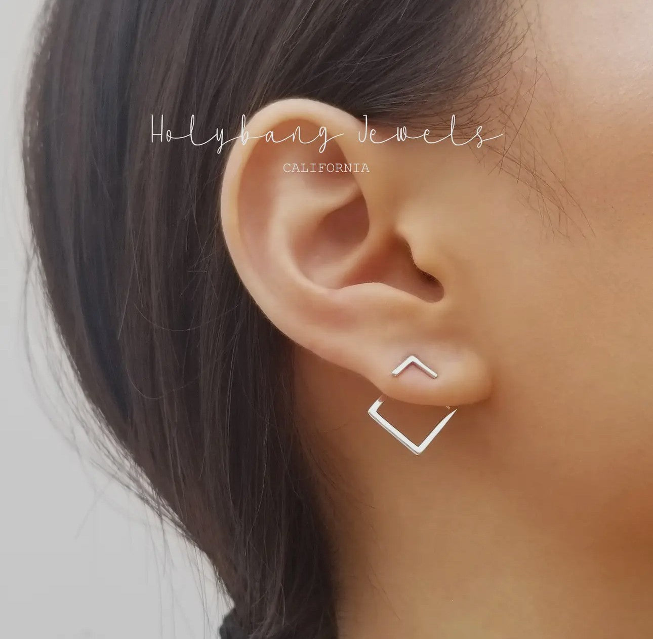 This product is offered in silver, rose gold, and black with rhodium, rose gold, rhodium plating on top of 925 sterling silver. The plating is thick and nickel-free, making it hypoallergenic for sensitive skin. These ear jackets are sold as a pair and measure 17mm in height and width.