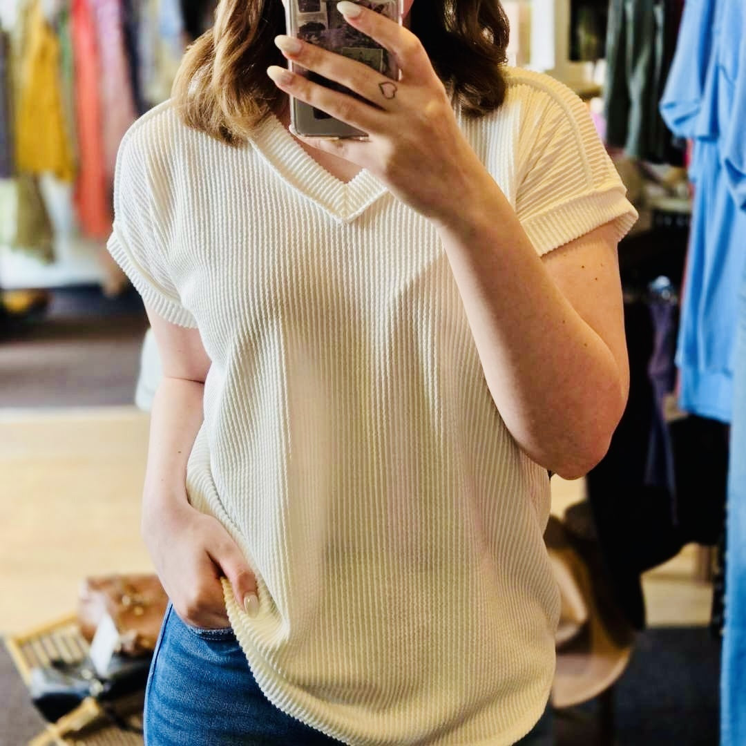 Crafted with a lightweight blend of 95% polyester and 5% spandex, this Urban Ribbed Tee guarantees a relaxed and comfortable fit. Its dolman short sleeves and V neck with band add a touch of style, while the hunter green and Ivory color options make for a versatile addition to any wardrobe. The round hem and stitch detail complete the look of this essential top.